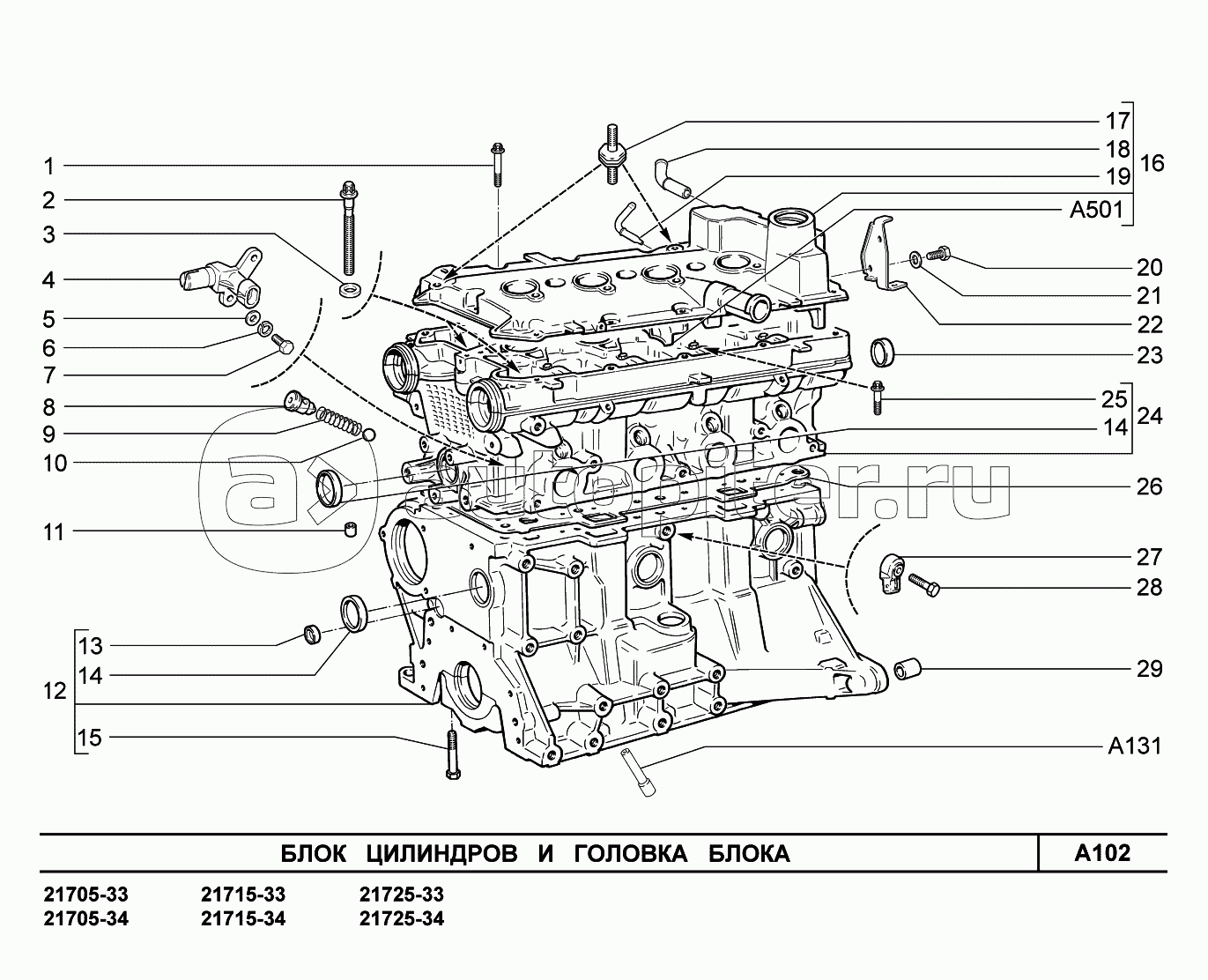 A102. Блок цилиндров и головка блока