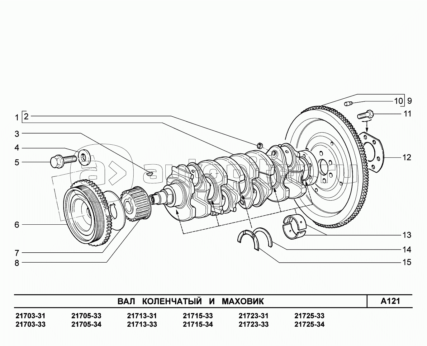 A121. Вал коленчатый и маховик