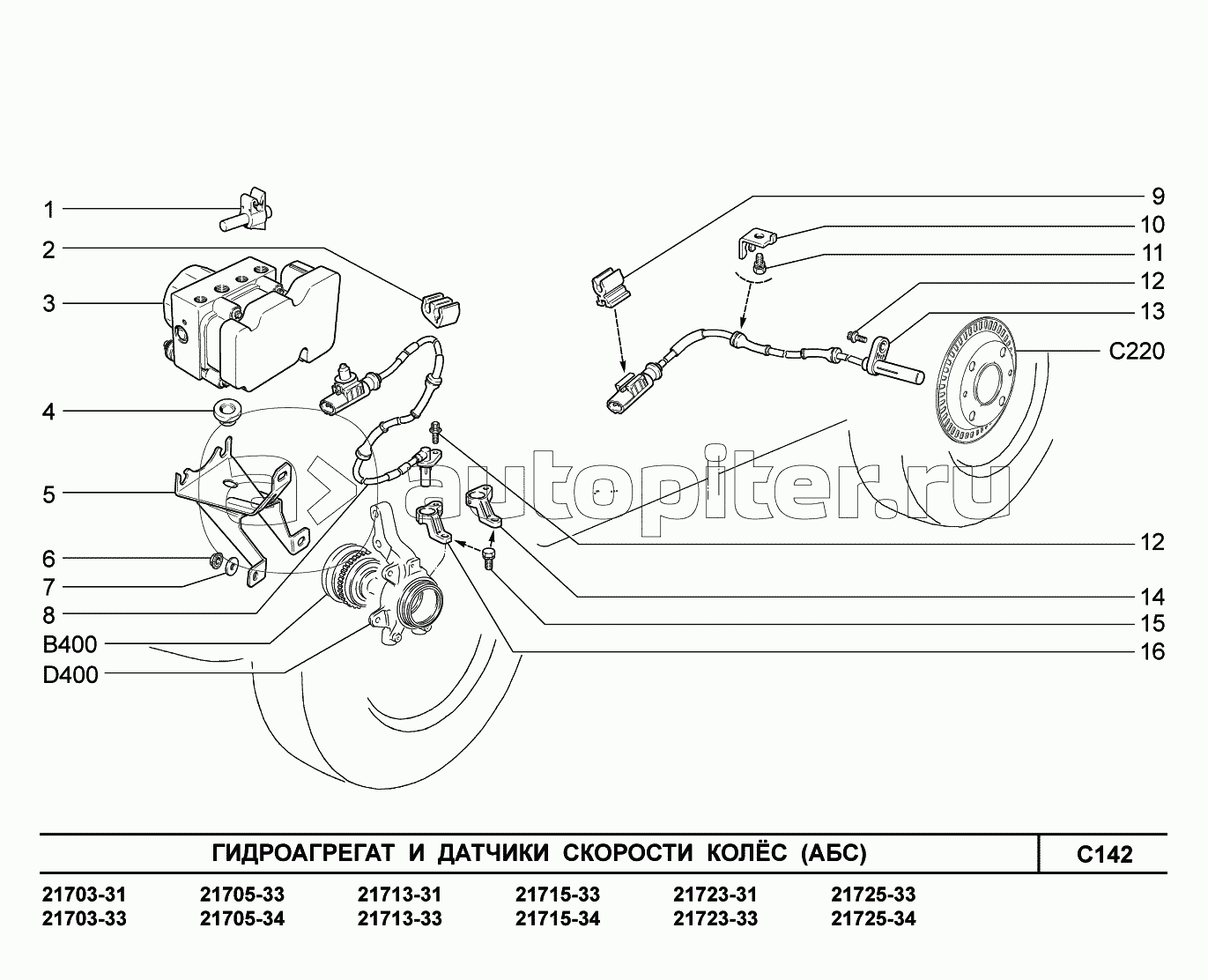 C142. Гидроагрегат и датчики скорости колес