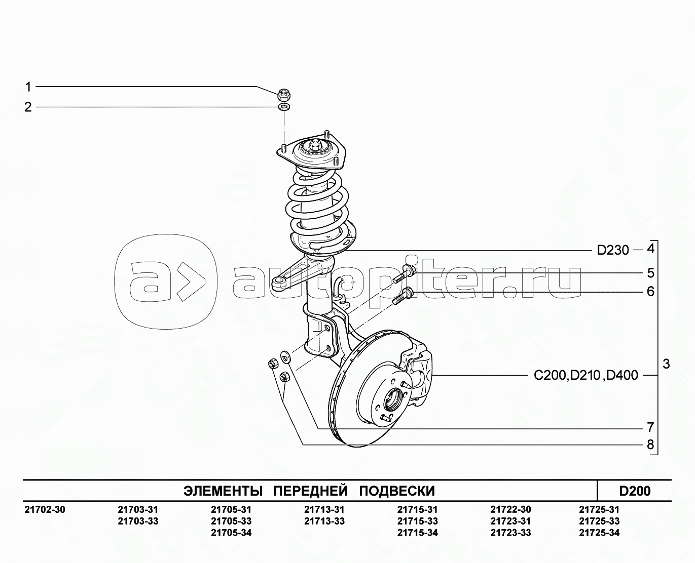 D200. Элементы передней подвески