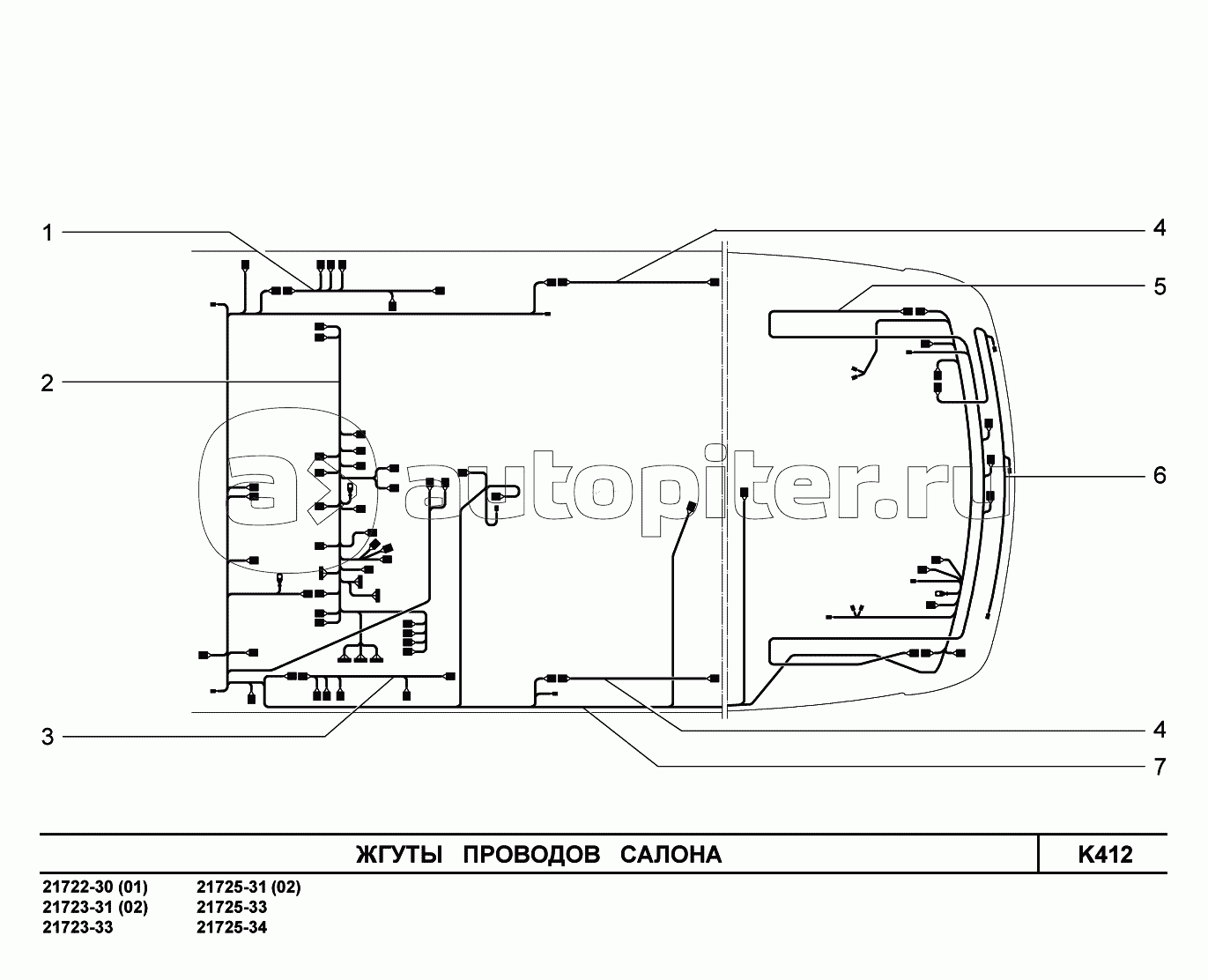 K412. Жгуты проводов салона