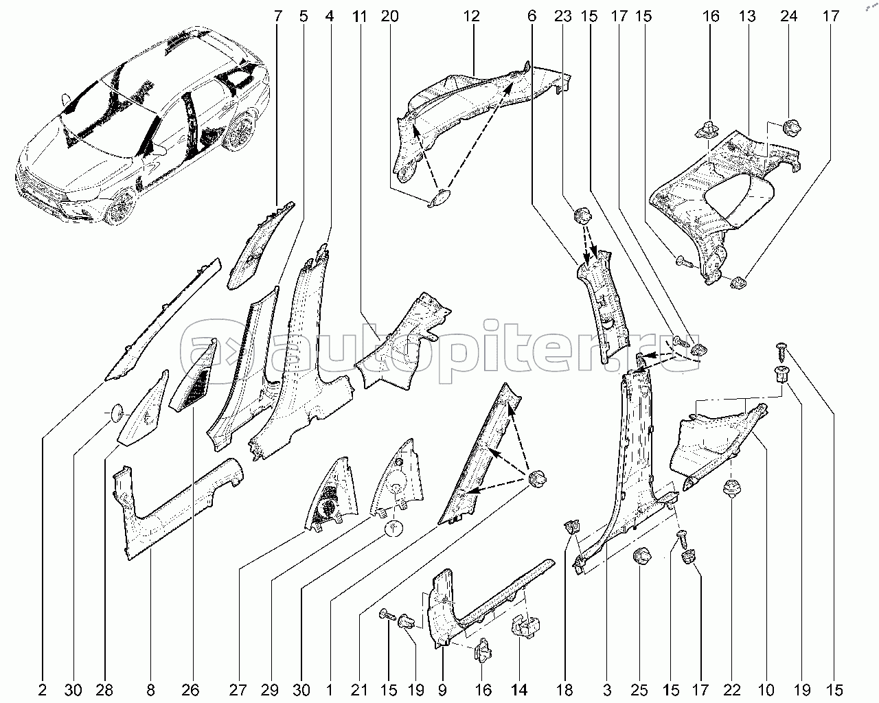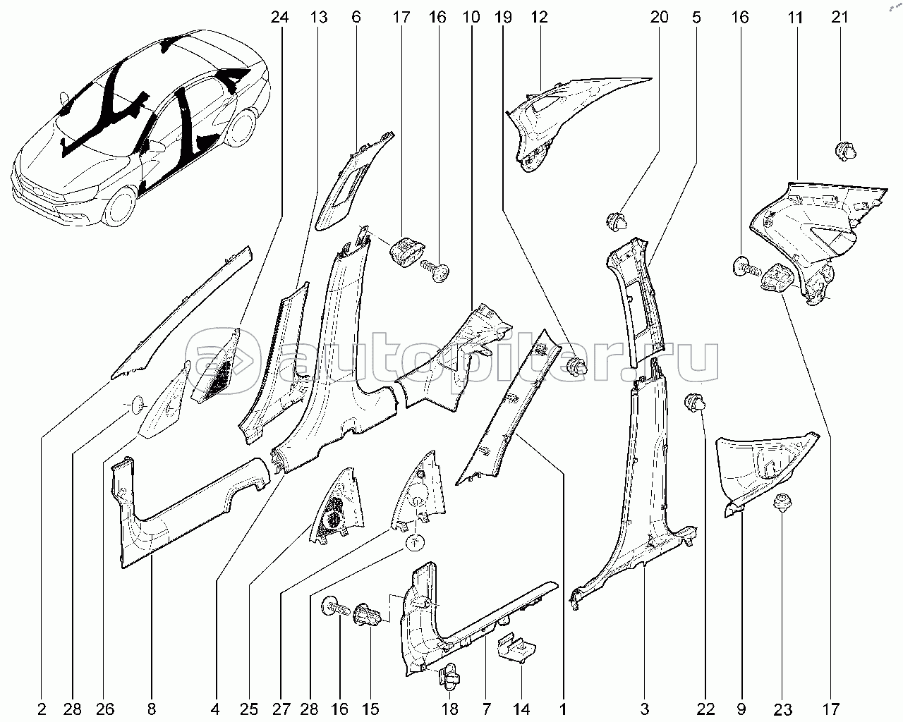 570110. Накладки стоек внутрисалонные (седан)