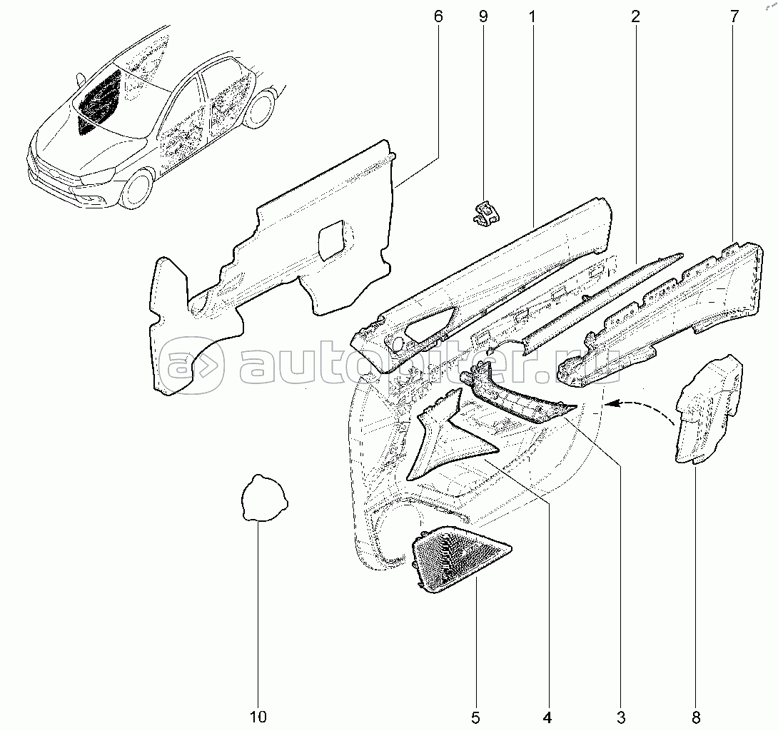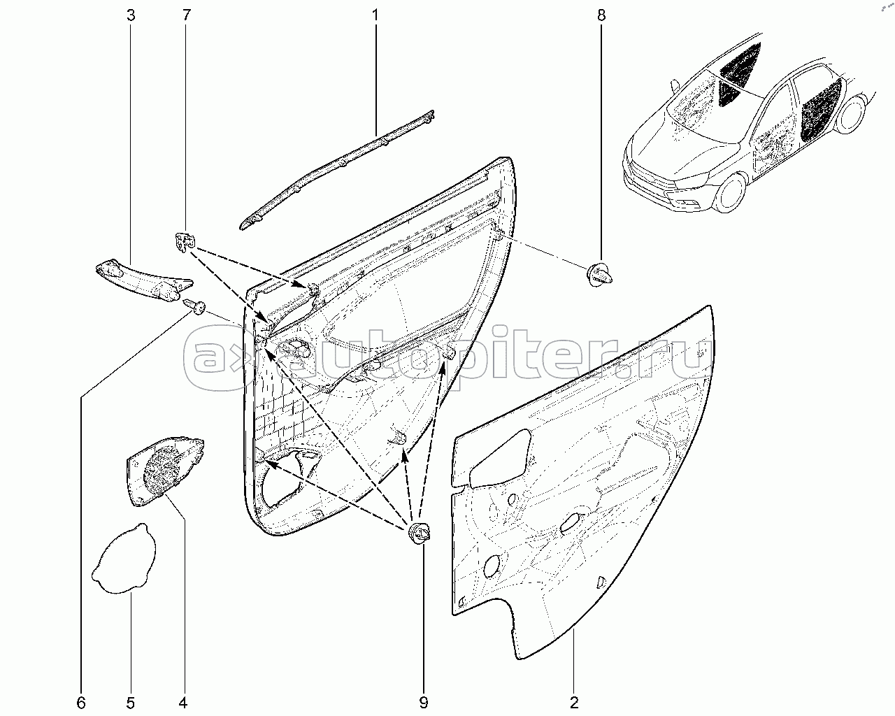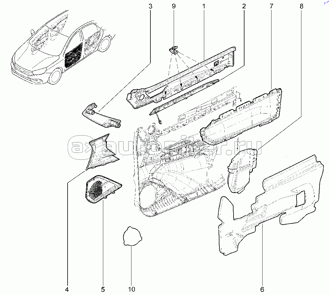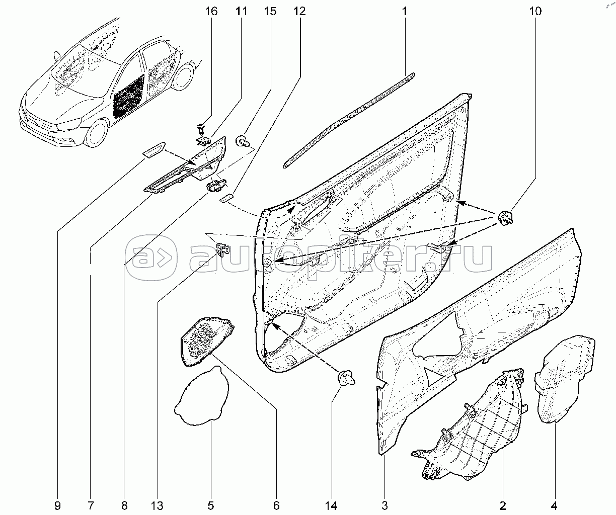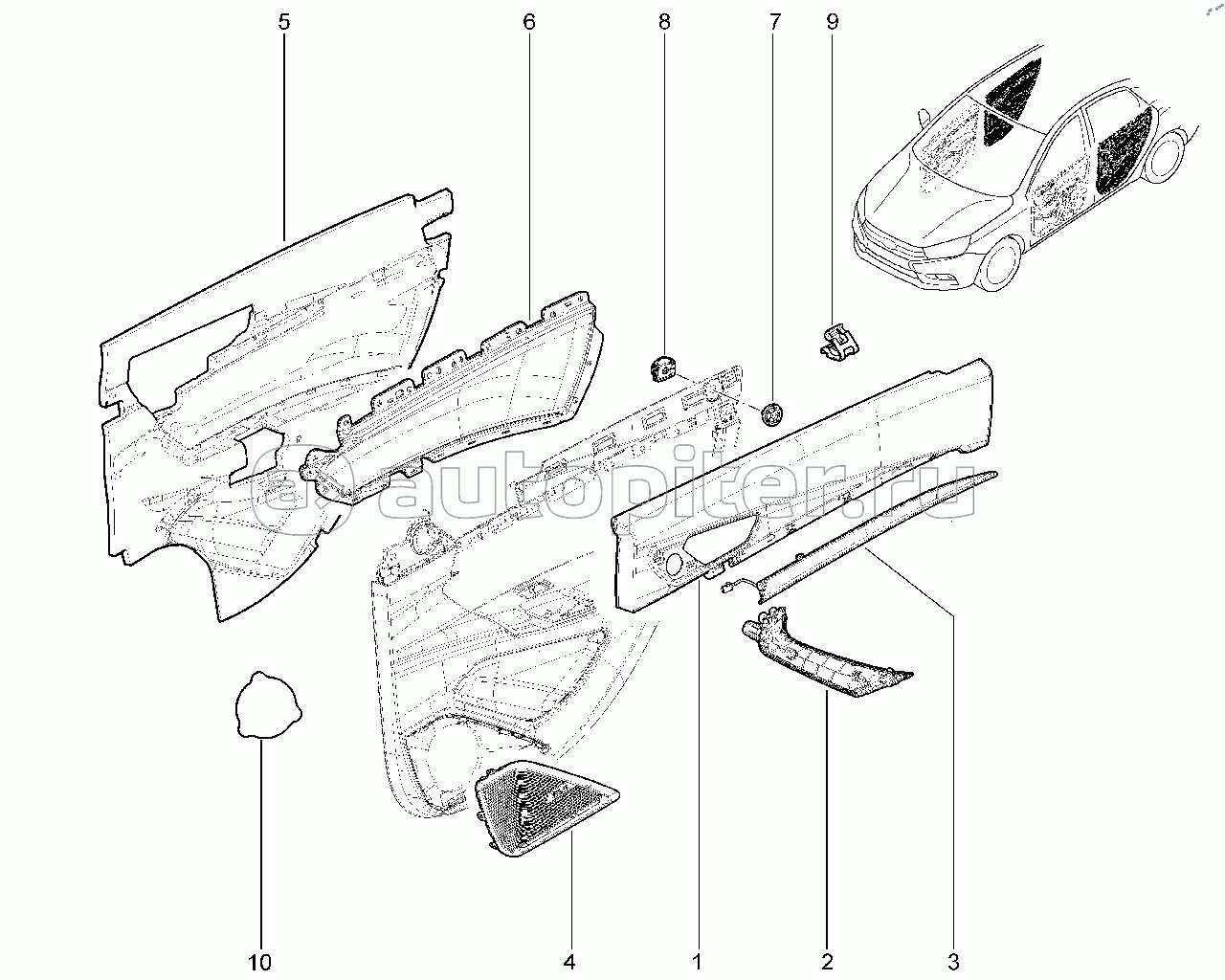 576210. Элементы обивки передней правой двери (FL)