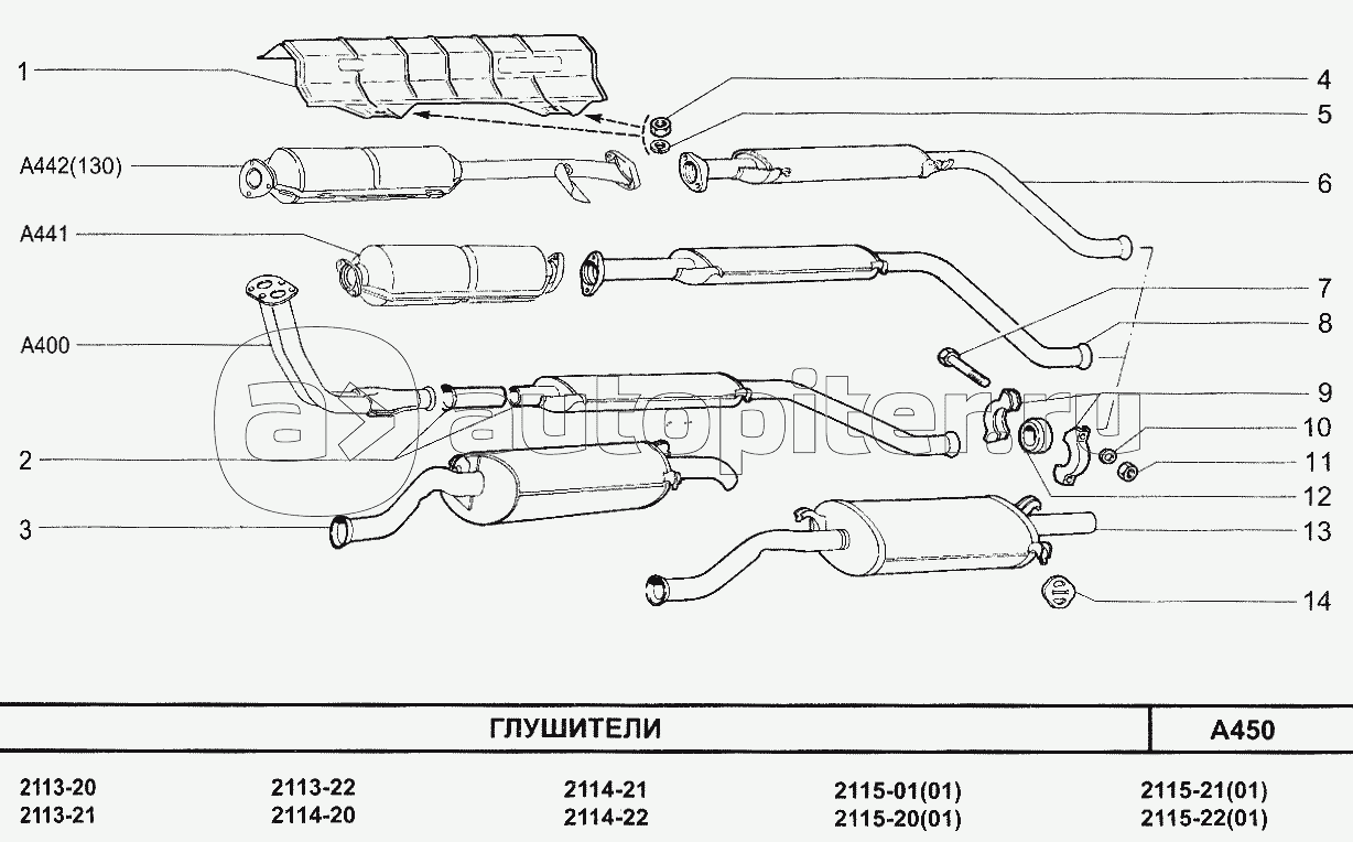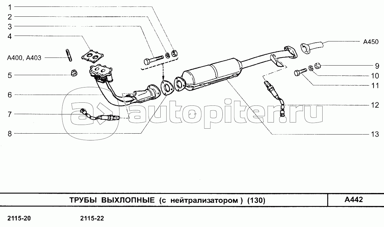 Трубы выхлопные (с нейтрализатором) (130)