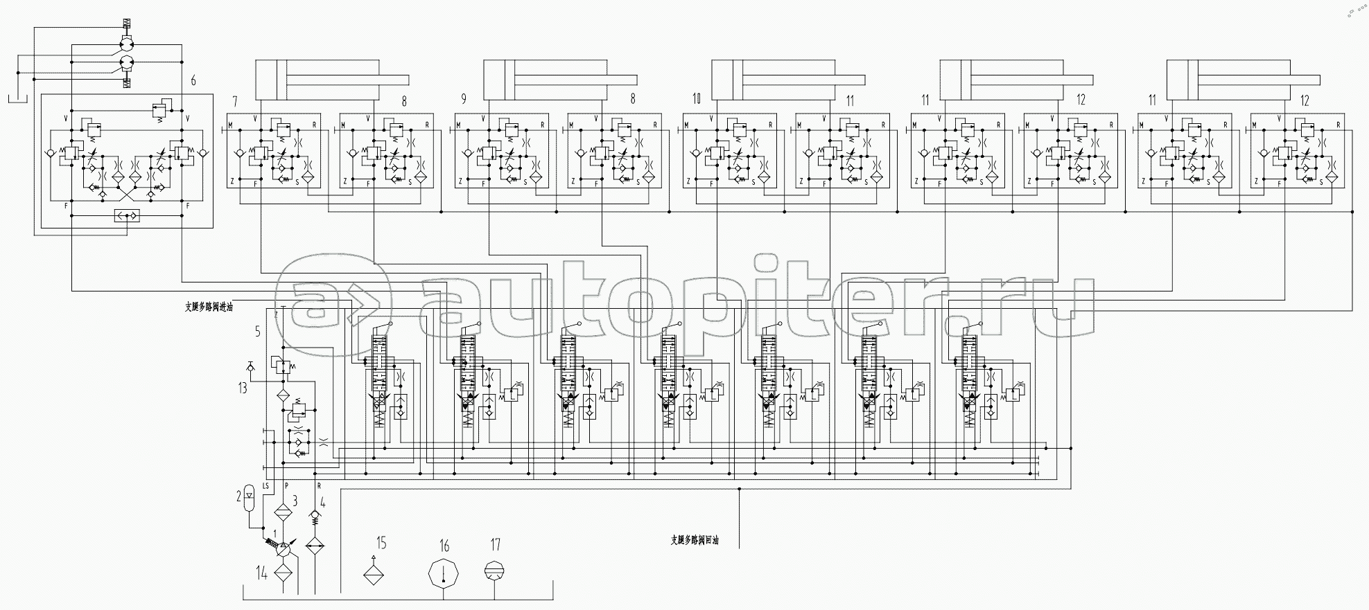 HYDRAULIC PIPELINE OF RIGHT-FRONT OUTRIGGER